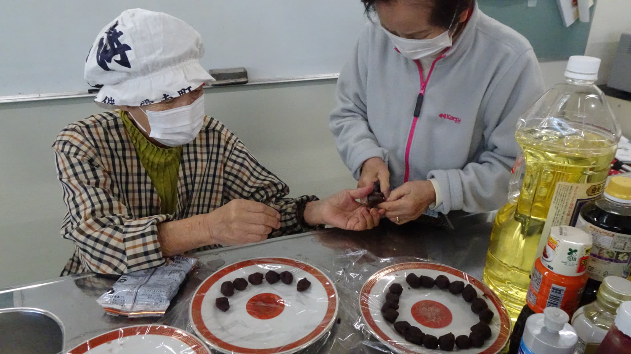 ↑みなさんが昆布料理を作っている間にはがま餅の準備中