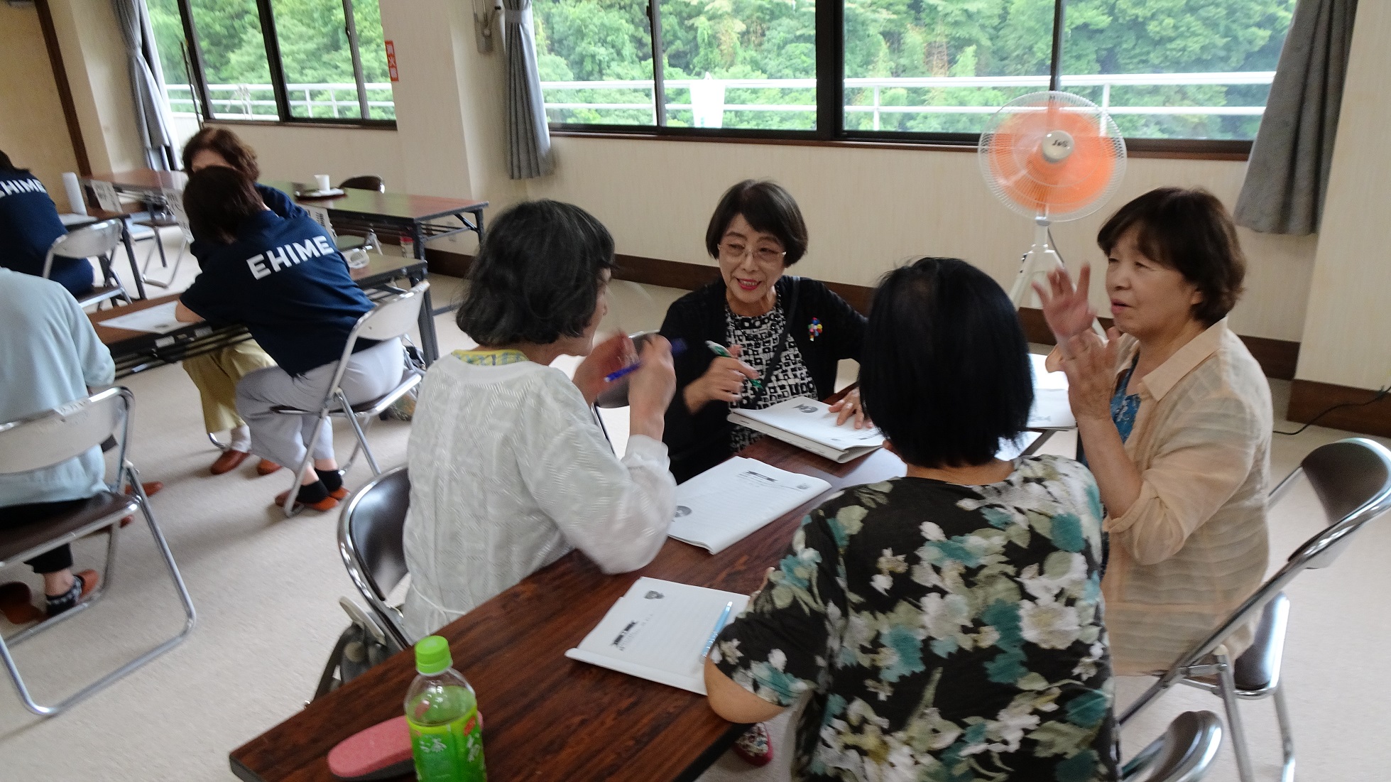講演を聞いて感じたことや、地域での活動にどのように活用できるか、また、地域の婦人会活動についての情報交換などを各グループ内で行い、参加者の皆さんは終始とても楽しそうで、時間になっても話が尽きないご様子でした(笑)